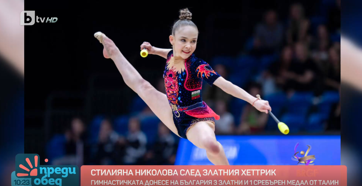 Стилияна Николова призна, че е много щастлива от спечелените три златни и един сребърен медал на Европейското първенство по художествена гимнастика за жени в Талин. Едното злато на грацията на бухалки е историческо, тъй като за последно българка в лицето на Адриана Дунавска го печели на такъв форум в далечната 1988 година.