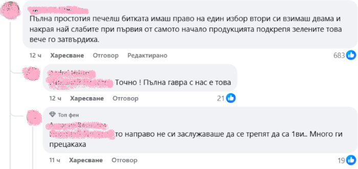 Коментарите показват и още нещо. Ряадостина, която стана рекордьор по престой на Блатото, в началото печелеше симпатиите на зрителите. След като обаче влезе в реалната игра, тя обаче много бързо отблъсна аудиторията със светкавичното си включване в интригите на коалициите и в момента е една от най-мразените участнички.