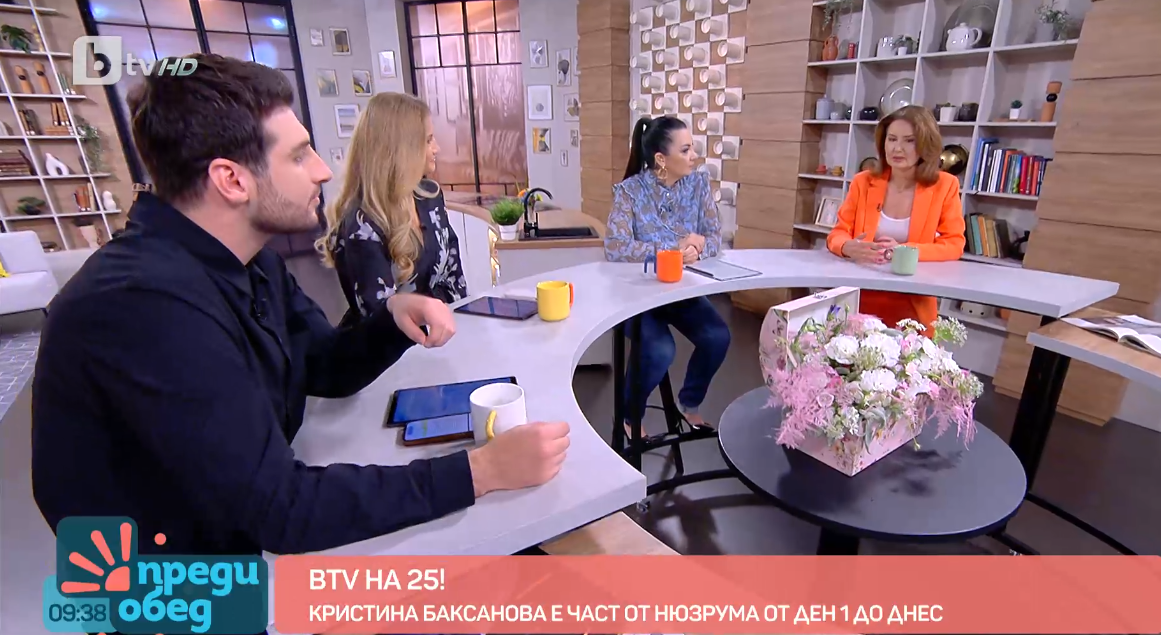 Трябваше да направя първия материал как всъщност е изградено студиото на bTV, защото ние сме в зала в НДК, която дванадесет години е използвана за панаир на книгата. Този материал трябваше да представи изграждането на студиото и на нюзрума. Естествено, той започна с така наречената шапка на анимацията, с която се откриват новините, разкри Кристина.