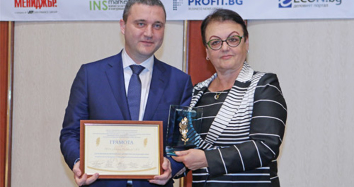 Наградата беше връчена на г-жа Христова от министъра на финансите – Владислав Горанов.