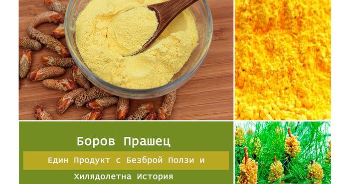 Сам по себе си боровият прашец е полен – растителна мъжка полова клетка на бора. Именно заради тази своя природа той съдържа всички необходими компоненти за създаване на нов живот. Съвременните лабораторни и клинични изследвания разкриват широк обхват от над 260 микроелемента, сред които витамини, минерали и аминокиселини. Има достатъчно съдържание на фитохормони, с което успешно регулира хормоналните процеси във всеки организъм, забележете само ако това е необходимо! Нещо, което е много ценно след определена възраст. От безбройните ползи за кожата, през повишаване на имунната система и протекция на черния дроб (незаменимо свойство след тежки и дълги вечери), до регулиране размера на простата при мъжете. Това са само част от ефектите. Много ефективен при по-интензивна физическа активност, тъй като дава енергия, сила и издръжливост. Нека обаче не се заблуждаваме, след започване на приема му няма да почувствате някакви сериозни, „ударни“ ефекти. Всичко става съвсем естествено и без абсолютно никакви странични ефекти, характерни за изкуствените химични препарати. Звучи прекалено добре, за да е истина, а на моменти дори фантастично. Но истината е, че всичко това се основава на реални данни, дългогодишен опит и изследвания. Приема се два-три пъти дневно (в зависимост от формата), 30 минути преди хранене за по-добър ефект. Истинските предимства на боровия прашец са неговата комплексност и естествен произход. Няма друга позната храна с подобно богато съдържание на микроелементи.