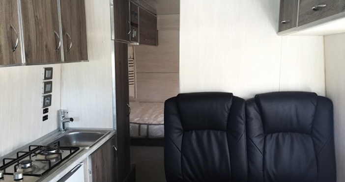 Вашият кемпер ще разполага с 4 места за сядане и спане, мека мебел еко кожа и алкантара, луксозни мебели, ротиращи предни седалки, кухня с газ и мивка Thetford, хладилник с фризер Thetford, бойлер, баня и WC Thetford, газова печка Truma, озвучителна система Pioneer, RBG LED осветление, тягов акумулатор 100Ah и инвертор 12/220v 1000w.