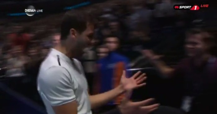След последната точка в мача Димитров отиде да се поздрави със своя екип, най-близките си хора, а обърна специално внимание и на треньора си Валверду.