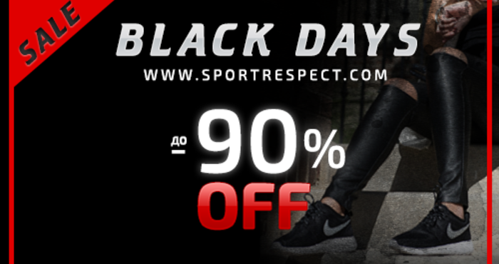 Онлайн магазин за спортни стоки WWW.SPORTRESPECT.COM стартира с пълна сила най-новата си кампания "Black Days", в която намаленията на продуктите достигат до умопомрачителните 90%.