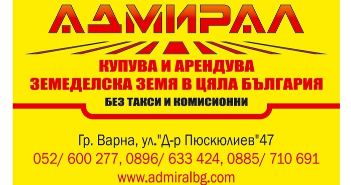 „АДМИРАЛ“ е агенция с 15-годишен опит в областта на покупко-продажба на обработваеми и необработваеми земеделски земи. Постигнатите стабилни позиции, сред силната конкуренция в бранша, се дължат най – вече на добрата организация и структуриране на дейността, спазване на професионалната етика и гарантираната коректност към клиенти и партньори. Фирмата разполага с екип от квалифицирани юристи, икономисти в областта на недвижимите имоти и работи с най-добрите нотариуси в страната, осигуряващи максимална защита на интересите на клиентите при сключваните от тях сделки.