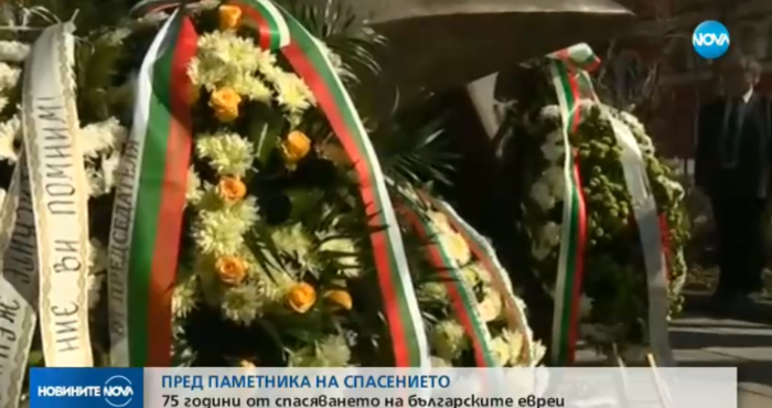 Венци и цветя пред Паметника на спасението. Поводът е 75 години от спасяването на българските евреи, съобщи Нова тв.