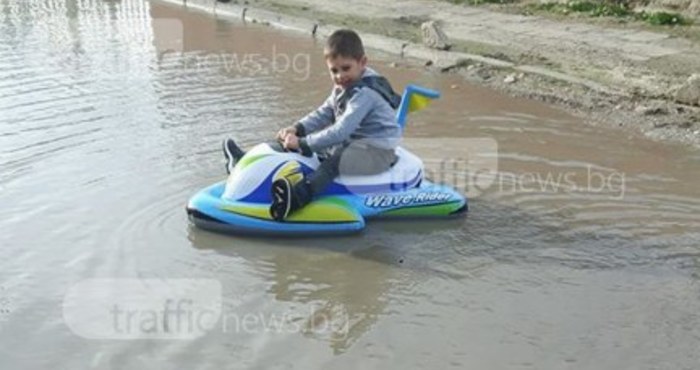 Единствено децата виждат проблема под друг ъгъл. Малчуган си наду лодка и се спусна в игри в дълбокия гьол.