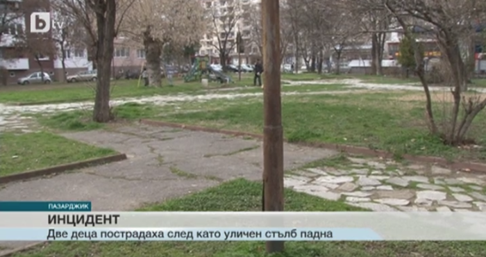 Метален стълб от уличното осветление падна върху две деца в Пазарджик. За щастие, те не са пострадали сериозно.