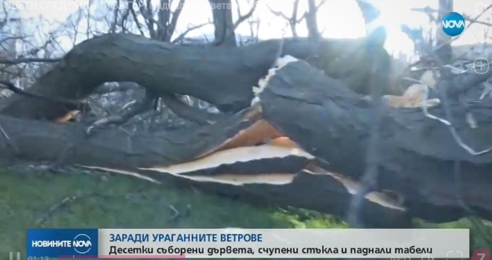 Силен вятър в почти цялата страна. На места събори дървета и клони, табели и покриви. Няма пострадали хора.