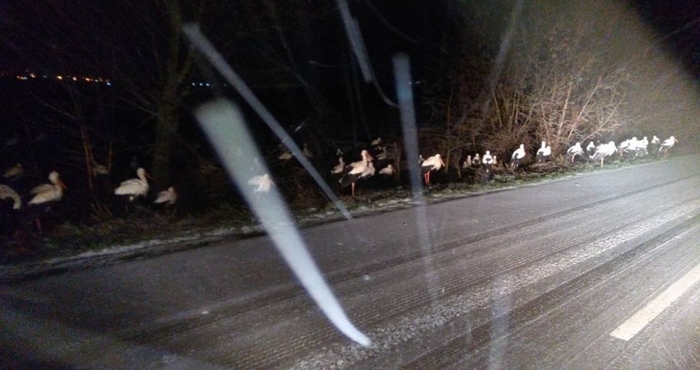 Странното време и особено силният вятър обърка щъркелите и цели ята нощуват по пътищата, съобщи Блиц. Птиците представляват истинска опасност за шофьорите, защото изскачат ненадейно и могат да предизвикат катастрофи. През нощта щъркелите не виждат и опасността от инциденти нараства.