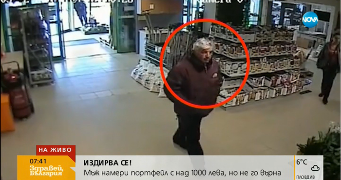 По Нова ТВ разпространиха снимка на мъжа, който намери портфейл с над 1000 лева и документи в магазин за строителни материали в Пловдив и не го върна.