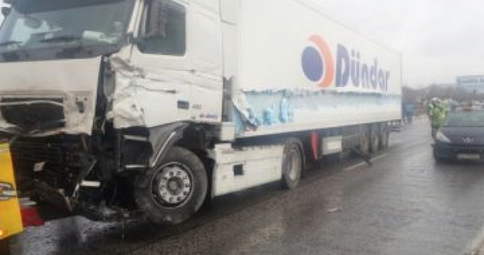 Опел Зафира с бургаска регистрация управляван от 40-годишния С.А от Снягово отнема предимството на влекач Волво. Заради обилния снеговалеж камионът не може да спре и се предизвиква тежка катастрофа, уточнява "Флагман". От нея е пострадал шофьорът на Опел-а и спътничката, пътуваща до него.