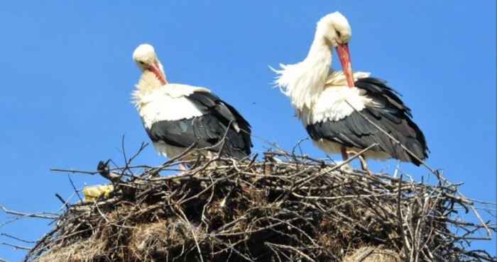 С помощта на подемник служители от дежурния екип на службата са достигнали до гнездата и са свалили птиците, които са били настанени на топло място.