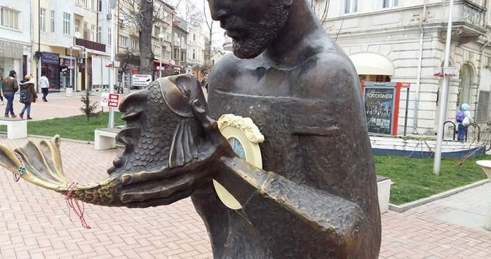 Бронзовата фигура на Рибаря и Златната рибка във Варна има ново допълнение. То представлява нещо като емблема в декоративна рамка.