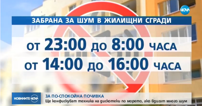 По-строги мерки срещу шума. Забраните вече ще се обхващат по-голяма част от денонощието и повече обекти. Вдигат се и глобите за нарушителите. Конфискация на техника в полза на държавата и нови „ тихи” часове са част от законовите промени.Разписани са и допълнителни правомощия на служителите на МВР, които могат да затварят обекти-нарушители за срок от 7 дни, предаде Нова тв.