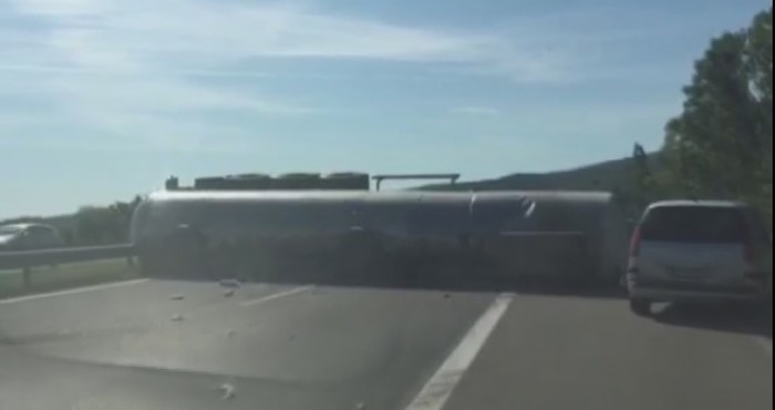 Цистерна се е обърнала на магистрала „Тракия” при км 10 в посока Пловдив. По първоначална информация шофьорът не е пострадал, няма и други пострадали при инцидента.