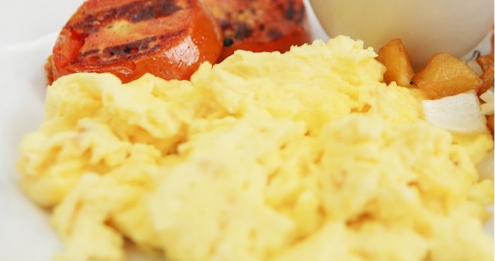 Закуска – 3 бъркани яйца с копър, лук и магданоз;