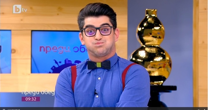 Ексцентричният водещ на предаването "Преди обед" Александър Кадиев за пореден път показа нестандартното си чувство за хумор.