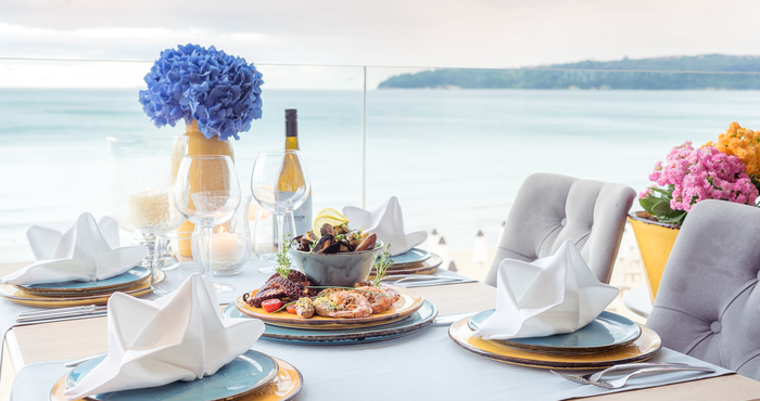 Портфолиото от храни и напитки слага началото с чудесна рибена супа и пържен сафрид, следва се от българска тарама хайвер, домашно приготвени фокачи и гризини, придружава се от безусловно желаните пица и паста, за да финишира със стриди, омари и вкусно телешко.