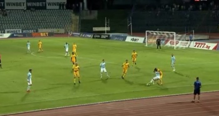 Първата сериозна ситуация в мача стана в 13-ата минута, когато Давиде Мариани получи топката от Обертан и шутира силно на сантиметри покрай вратата. Пет минути по-късно Станислав Костов не успя да засече центриране на Обертан. След по-малко от още 60 секунди Костов подаде към нахлулия на скорост Ивайло Найденов, чийто удар бе спасен от Филип Димитров.