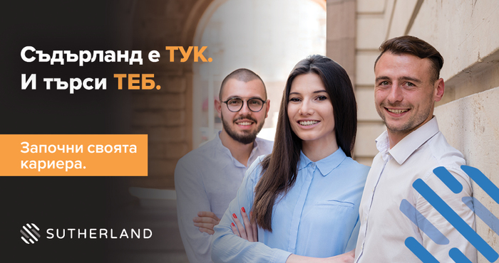 Съдърланд е компания с 10 годишна история в България и разкрити над 2000 работни позиции. Тя предлага на своите служители отлични условия за работа, конкурентна заплата, гъвкаво работно време, безплатни обучения и уникален пакет от социални придобивки, който включва допълнително здравно осигуряване; ваучери за храна; разходи за транспорт и много др.