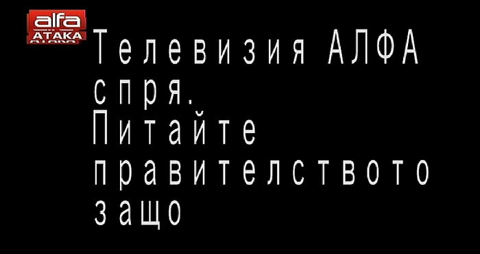 Партийната телевизия на "Атака" изненадващо спря излъчване в понеделник следобед. Екранът е черен и има надпис: "Телевизия Алфа спря. Питайте правителството защо".
