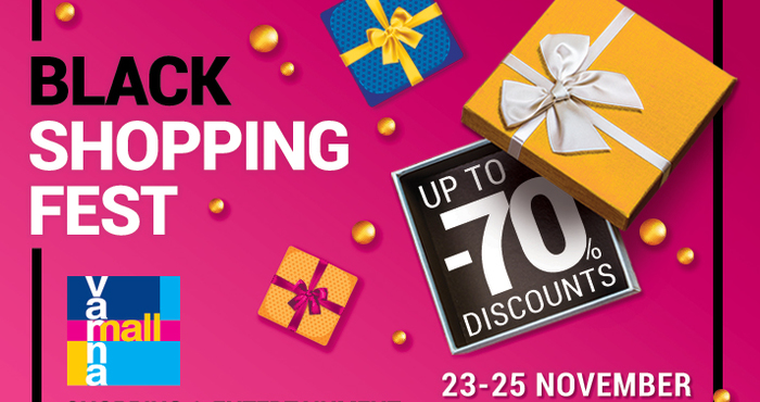 Тридневен Black Shopping fest дава старт на голямото коледно пазаруване във Varna Mall! От 23 до 25 ноември посетителите на търговския център ще могат да се възползват от ексклузивни цени в обектите на територията на търговския център, атрактивни промоции и отстъпки, маркирани с един и същи код – ИЗГОДНО!