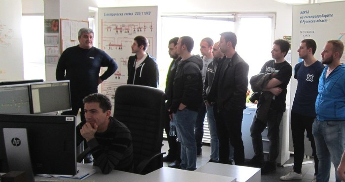 Регионалният старши диспечер на ЕРП Север Огнян Кочев представи на студентите основните моменти в диспечерската работа, обясни схемите на района и демонстрира използването на техническата апаратура. Младите енергетици имаха възможност да разгледат еднолинейната схема на региона, реализирана върху диспечерския щит, както и документацията, която всяко диспечерско звено води – за извършване на планирани дейности по мрежата, за оперативни превключвания, за промяна схемата на електрозахранване, за регистриране на аварии и други.