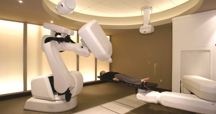 Туморът и движенията на пациента се проследяват в реално време с помощта на компютърно контролирана роботизирана технология и образна система. Така всяка промяна в местоположението се улавя и лъчението се коригира незабавно. Възможно е да се приложи лечение едновременно върху множество тумори.