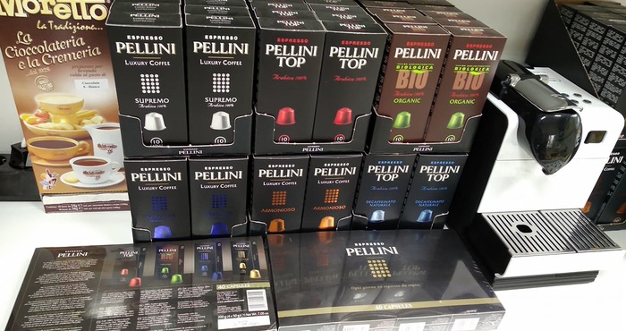 Там на място можете да опитате от огромното разнообразие на кафета - на зърна, мляно и на капсули. Сред видовете от ароматната и ободряваща напитка са Pellini Gusto bar N1 Vellutato, Pellini Superiore, Pellini Top 100 % Арабика, Pellini Aroma Oro, Магнифика, органично био кафе, безкофеиново, Кремозо, Интензо и други.