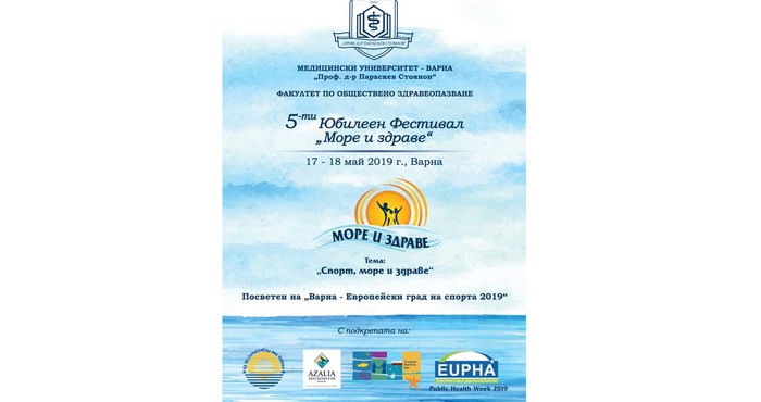 Утре, 17 май, в 11.00 часа на входа на морската градина ще бъде открита изложба на тема „Спорт, море и здраве“, с която започват мероприятията от петия фестивал „Море и здраве“. Тази година МУ-Варна получи признание от Европейската комисия, чрез отразяване на Фестивала „Море и здраве“ като едно от международните събития, посветени на Европейския ден на морето. Фестивалът ще бъде включен и като част от мероприятията, посветени на Европейската седмица на Общественото здраве (Public Health Week 2019) на Европейската асоциация на общественото здраве.