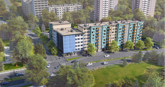 Допълнителните апартаменти ще са в резултат на преустройството на административната сграда и ще се намират в ъгловата секция на сградата като вход номер 4. Те ще бъдат разположени на 6 етажа, като всеки типов етаж ще се състои от 3 двустайни и 2 тристайни апартамента. На партера ще се предостави около 480 кв. м. търговска площ за продажба. Двустайните апартаменти са със ЗП 54 кв.м., 57 кв.м. и 66 кв.м., а тристайните – 88 кв.м.