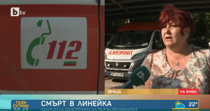 По думите ѝ при пристигането на екипа, пациентът е бил с побеляла уста и затруднено дишане. Крайниците му са били крайно оттекли. Борили са се за живота му дотолкова, доколкото е възможно.Агенция „Медицински одит” се самосезира по случая с починали 28-годишен пациент, издъхнал в линейка във Враца.Според близките на починалия Веселин Георгиев, медицинският екип, пристигнал с линейка, не му е оказал никаква помощ. Въпреки че е бил с наднормено тегло, 28-годишният мъж е бил енергичен и до последно е бил на работа. По думите на майката на Веселин той е транспортиран по очи на носилката и не е могъл да диша, пише Топ новини.