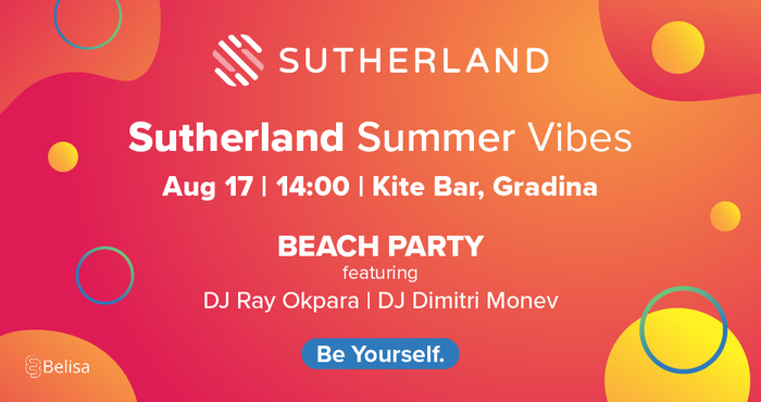 След броени дни Съдърланд ще бъде домакин на едно от най-запомнящите се събития на лятото, като екипът на компанията е приготвил нещо специално за всички любители на плажа, морето и хубавата музика. На 17 август /събота/ с начало 14 часа на един от най-известните плажни барове на къмпинг Градина, Kite Bar, Съдърланд ще внесе страхотно настроение със Sutherland Summer Vibes Beach Party. Слоганът на събитието е „Бъди себе си“, като домакините от Съдърланд са приготвили много изненади за всички, които се включат в активностите на място.