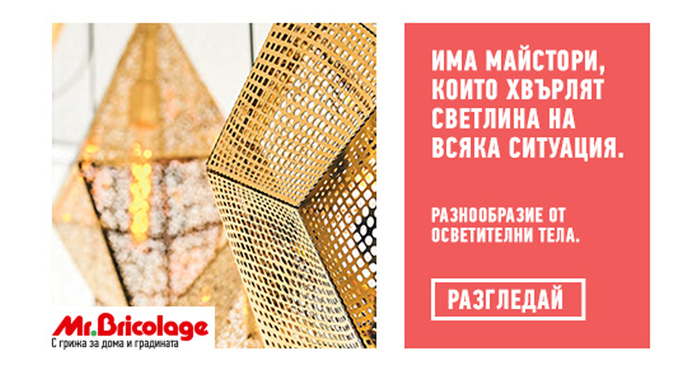 Mr. Bricolage винаги се стреми да предложи на клиентите си осветителни тела , които съчетават модерните тенденции със здрави и устойчиви материали, като качеството е винаги на първо място. Продуктите, предлагани в магазините Mr. Bricolage, са създадени с внимание и усет към детайла, за да се насладиш максимално на времето, прекарано у дома.