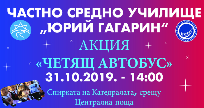 Акцията „Четящ автобус“ на ЧСУ „Юрий Гагарин“ ще се проведе във Варна на 31 октомври - в навечерието на Деня на народните будители