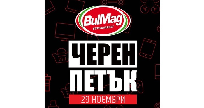 За четвърта поредна година Верига магазини BulMag ще се включи в едно от най-дългоочакваните събития за всички любители на пазаруването и изгодните оферти - Black Friday. Примамливата шопинг акция ще се състои 29-и ноември 2019 г. във всички магазини BulMag, както и в онлайн магазина www.bulmag.org. Подготвили сме голямо разнообразие от продукти със страхотни отстъпки до – 67%. Очакват Ви невероятни предложения в различни продуктови групи – хранителни стоки и напитки, техника, електроуреди, домакински пособия и домашни потреби.