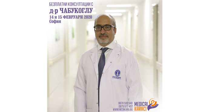 За безплатна консултация с д-р Дженгиз Чабукоглу в София на 14-ти и 15-ти февруари е необходимо предварително записване на телефоните на „Медикъл Караджъ“: 0878 500 940 или 0879 977 402.