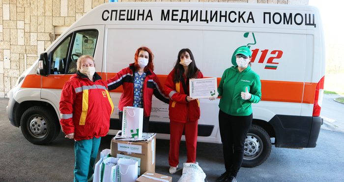 По повод Световния ден на здравето, екипът на „Девня Цимент“ АД засвидетелства благодарност към медиците от Спешния център в град Девня с благодарствен адрес и пълни коплекти лични предпазни средства за целия екип от медицински лица. Жестът има за цел да подкрепи спешните екипи в Девня в борбата им с епидемията от Covid-19 и да ги защити по време на отговорната им работа. Комплектите включват два вида маски, защитни очила, щлемове, ръкавици и цялостни защитни облекла.