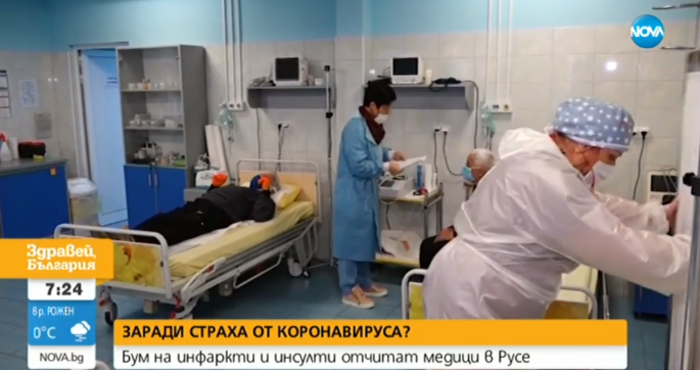 Бум на тежки инфаркти и инсулти, отчитат от кардиологичната клиника на болница „Медика“ в Русе. Според медиците пациентите се страхуват от заразяване с коронавирус и затова търсят помощ твърде късно. В същото време университетската болница е една от малкото в страната, която въведе система за дезинфекция на въздуха, съобщи Нова телевизия.