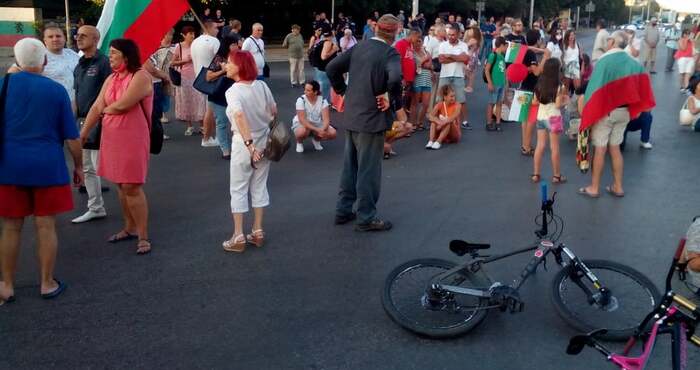 В този момент движението в сърцето на Варна е напълно блокирано. Протестиращи седнаха на асфалта точно на кръстовището на бизнехотела.