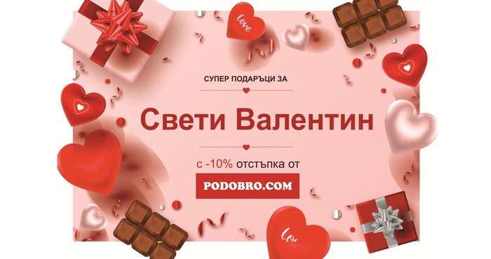 Най-харесвания магазин за подаръци на Варна PODOBRO.COM празнува своята 10-годишнина с много намаления за варненци и не само. Преди празника на любовта и виното Свети Валентин са решили да зарадват клиентите си с първата от поредица изненади през годината, а именно отстъпка за читателите на Petel.bg от -10% за поръчка през сайта им PODOBRO.COM