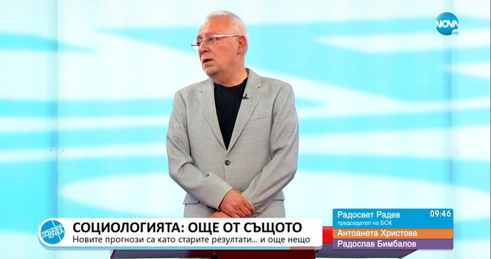 "След резултати от последното социологическо проучване на Галъп се случиха някои неща - например преговорите за коалицията вляво. Аз я наричам ЛОФ - ляв отечествен фронт", каза Радев в предаването "Пресечна точка" по "Нова телевизия".