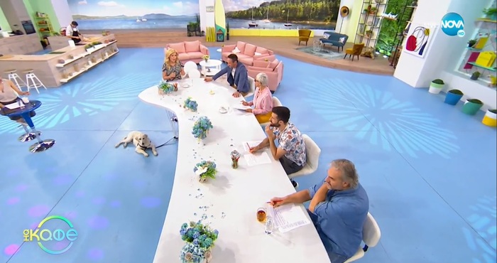 Предаването "На кафе" днес бе с нов член в екипа на Гала. В студиото до панелистите на водещата бе и куче.