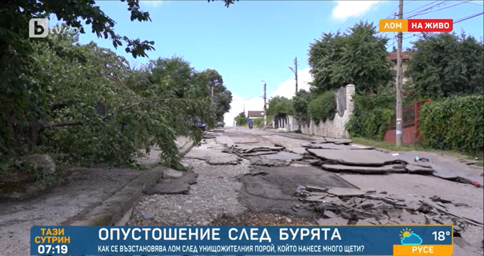 Невиждана стихия - силна буря и пороен дъжд, опустоши улици и прекърши дървета в Лом. Улиците са без канализация и не е имало възможност да се поеме толкова много вода.