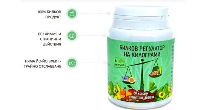 ''Билков регулатор на килограми'' е изцяло натурален продукт. Съдържа 60 капсули. При спазване на препоръчителната дневна доза от 1 капсула на ден, опаковката е достатъчна за прием в рамките на 2 месеца. Приемът е на гладно, поне 20 минути преди хранене. ''Билков регулатор на килограми'' е одобрен от ''Българска агенция по безопасност на храните''. Не се препоръчва употребата от деца под 18 г. Може да бъде закупен на цена от 20 лв. от : https://bio-otslabvane.com/