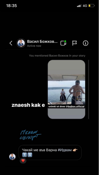 Като най-силен аргумент обаче се смята отговор на стори на бизнесмена от Инстаграм, в което отговаря на известен инфлуенсър. „Чакай ме във Варна. Идвам“.