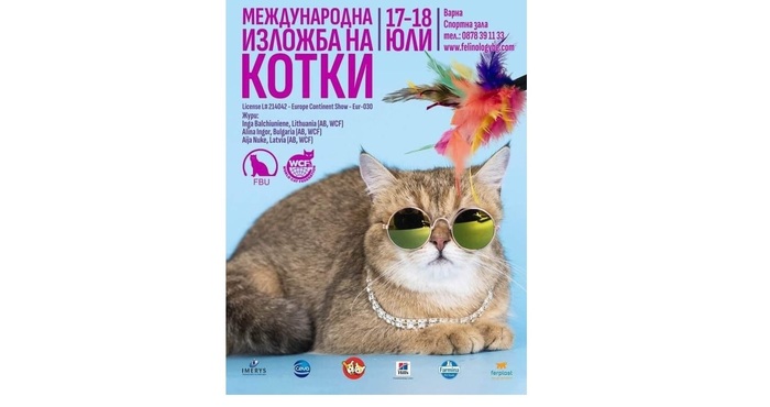 Каним ви на 17-18 юли 11:00- 18:00ч.. в зала „Младост” в Дворец на Културата и Спорта – гр. Варна на официалното откриване на Mеждународна лицензирана изложба на котки.