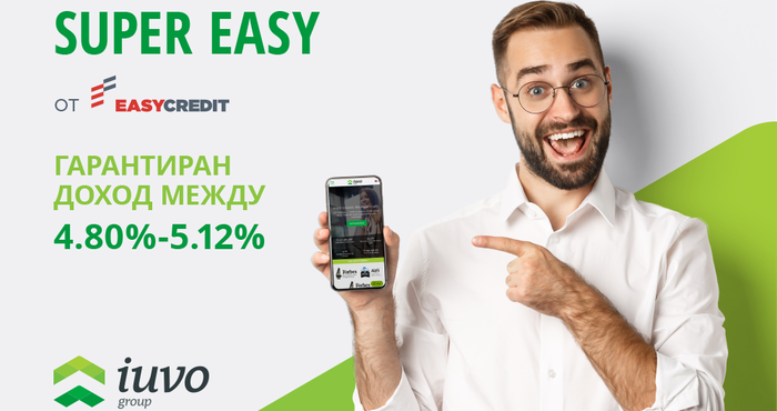 От 27 юли 2021 г. първият и най-голям оригинатор в iuvo - Easy Credit, предлага поредна уникална възможност за доходност на платформата iuvo с възможност за бърза ликвидност под името „Super Easy“ от Easy Credit. Компанията е добре позната на българския пазар вече повече от 16 години и е новатор в сферата на потребителското кредитиране с характерния си бизнес модел, включващ домашно кредитиране. За пръв път обаче потребителите на iuvo имат възможност да закупуват и вземания по бизнес кредитите на Easy Credit.