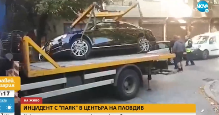 Неприятен инцидент със съоръжение тип "паяк" е станал в центъра на Пловдив. Докато се опитвал да вдигне лъскава кола за 100 000 евро, неправилно паркирана, я потрошил.